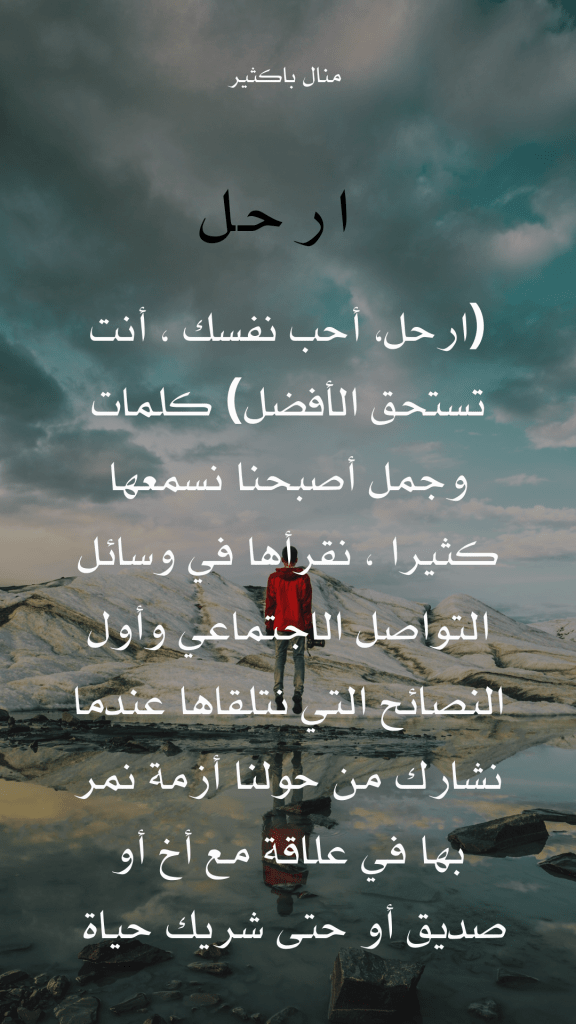 ارحل نعم ارحل ولكن ارحل كي لا تزيد الجروح عُمقا وكي لا تخسر علاقة أو شخص عزيز، ارحل حتى تخمد الخلافات وتهدأ العواصف … ارحل ولكن (تعلم متى ترحل)