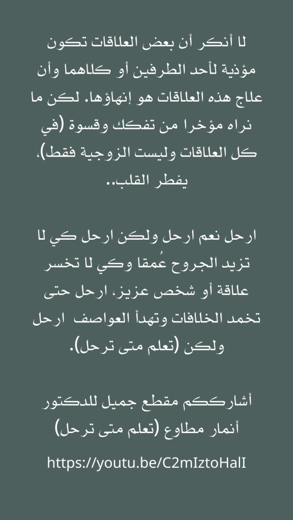 أشارككم مقطع جميل للدكتور أنمار مطاوع (تعلم متى ترحل)