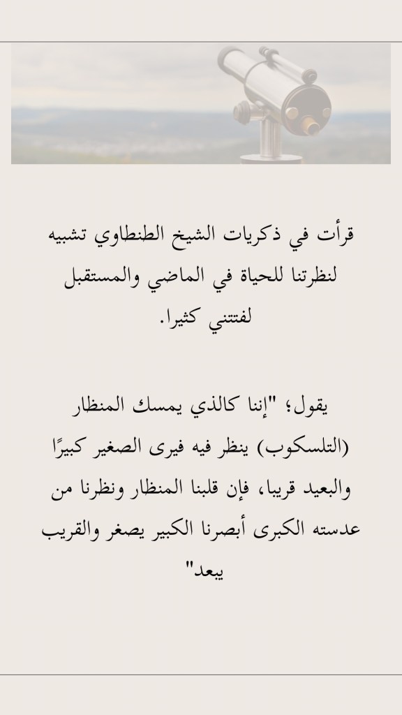 قرأت في ذكريات الشيخ الطنطاوي تشبيه لنظرتنا للحياة في الماضي والمستقبل لفتتني كثيرا.