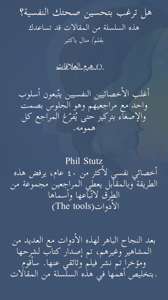 أخصائي نفسي لأكثر من ٤٠ عام، يرفض هذه الطريقة وبالمقابل يعطي المراجعين مجموعة من الطرق لاتّباعها وأسماها (The tools)؛ الأدوات