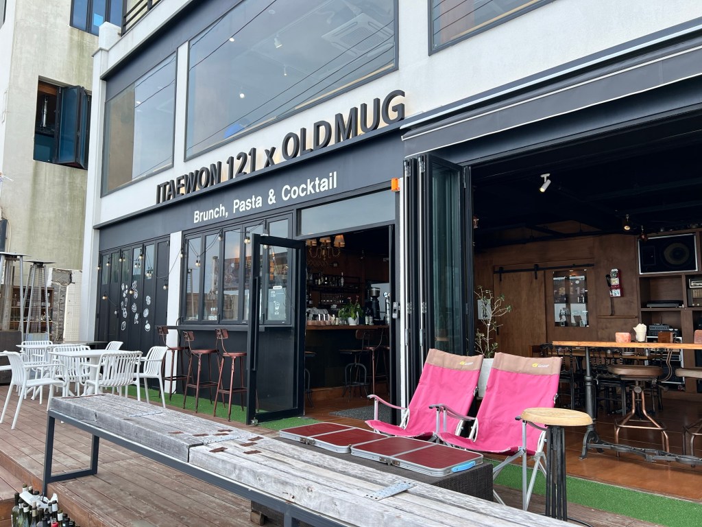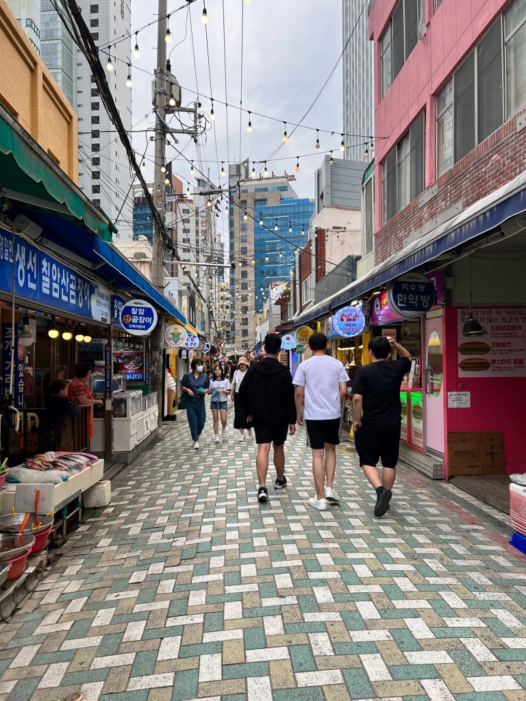 الشارع المقابل عبارة عن شارعين فرعية متعاكسة الاتجاه يتوسطها ممر للمشاة كما يوجد على جانبيها ممرات للمشاة كذلك كما يتفرع منها (مثل معظم شوارع كوريا) شوارع فرعية صغيرة للمشاة فقط. كلا الطرفين بالإضافة إلى الشوارع الفرعية يتواجد بها العديد من المطاعم (بعضها حلال) والمقاهي كما يوجد على امتداد أحد الشوارع الفرعية مطاعم محلية للمأكولات البحرية الطازجة.