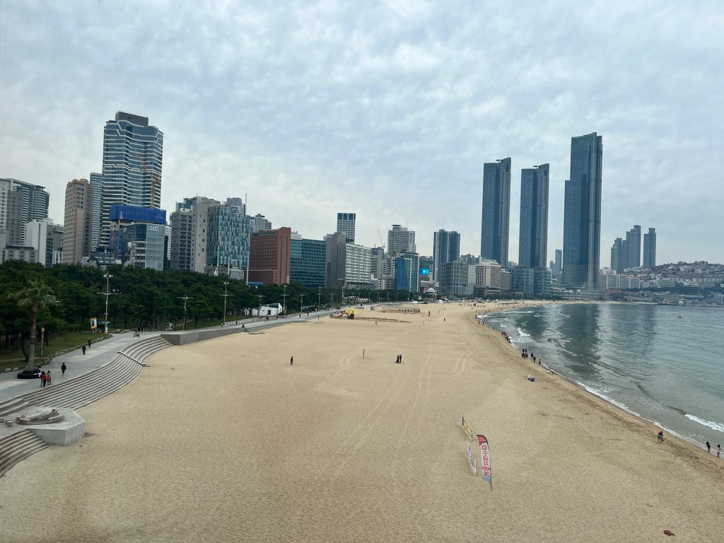 استقليت القطار وتوجهت لبوسان بعد الحجز في فندق مطل على البحر في شاطئ